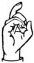 На ћирилици написано ЈУГОЉУБ КОРАЦА састоји се из 13 слова [?]. Исписано ћириличном једноручном азбуком за глувонеме: